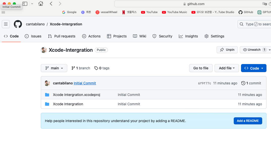 11. 프로젝트 좌측 네비게이터에서 2번째 탭 소스 컨트롤 네비게이터 - New "Xcode Intergration" remote