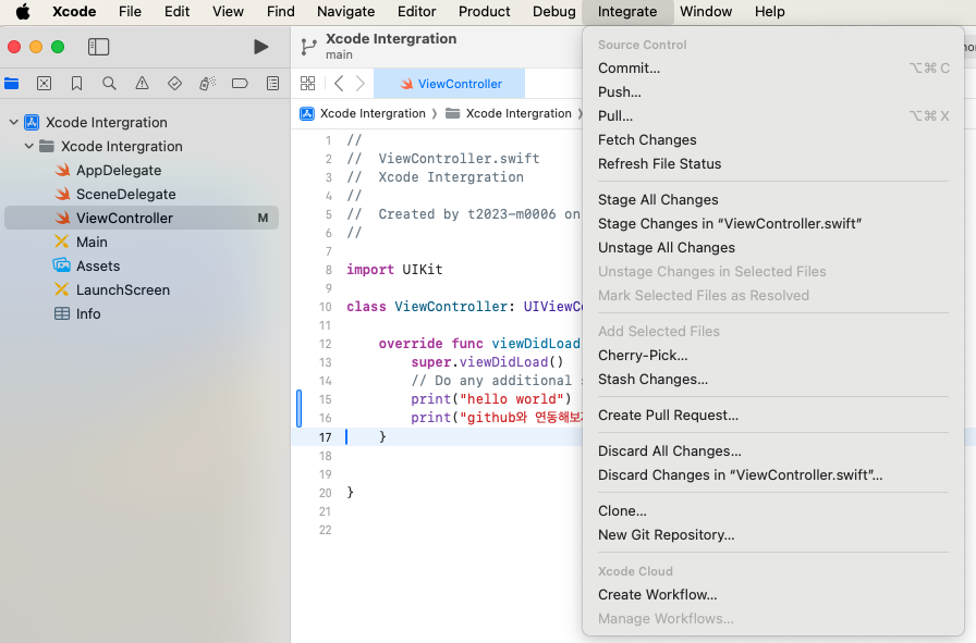 A. 협업을 위한 xcode 사용 간 github와 연동하기