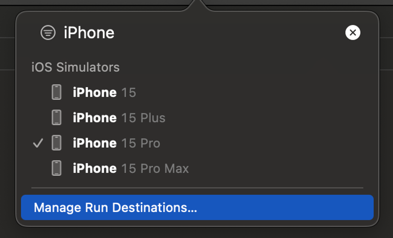 왼쪽 위 재생버튼 클릭하여, iPhone 15 Pro 시뮬레이터로 앱을 실행합니다.