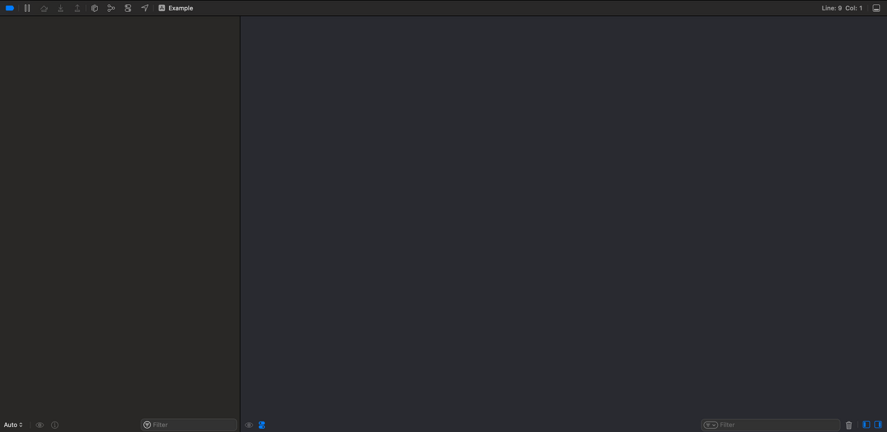 디버그 내비게이터 (Debug Navigator) 디버그 모드에서만 활성화 되고, 쓰레드별 또는 GCD(Grand Central Dispatch) 큐별로 동작 중인 스택 정보를 확인할 수 있음. CPU, 메모리, 디스크, 네트워크 사용율 변화에 대해서도 모니터링하는 기능을 제공