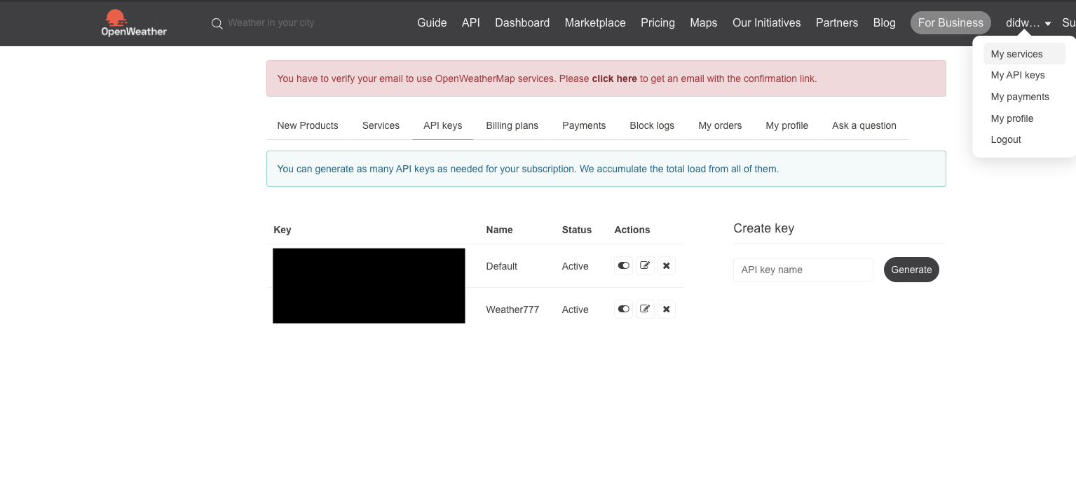 1. OpenWeatherMap에서 API 키 값을 받고나서,