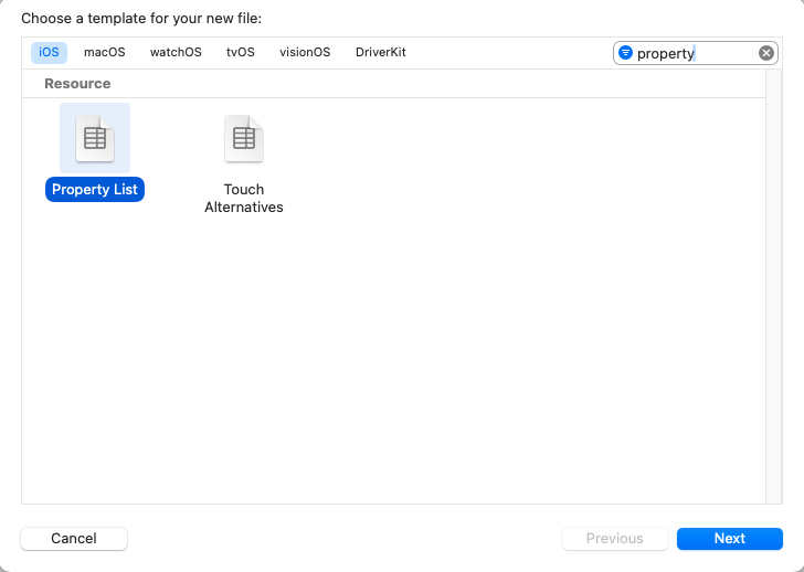 먼저 생성해둔 Xcode 프로젝트를 열고, Key를 저장할 .plist파일을 하나 만들겠습니다.