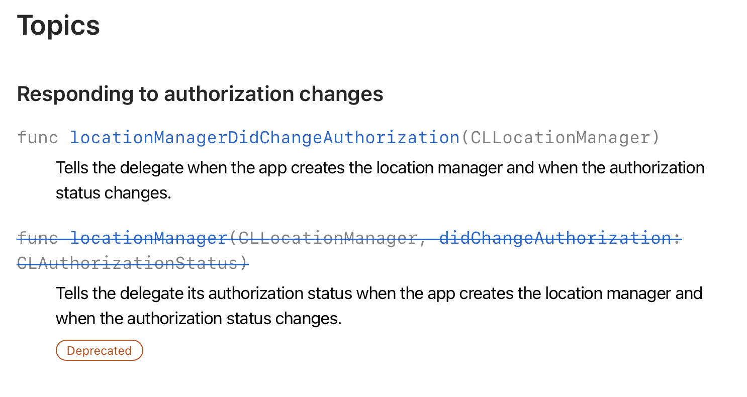 (아래의 didChangeAuthroization은 depreacated 되었다. )