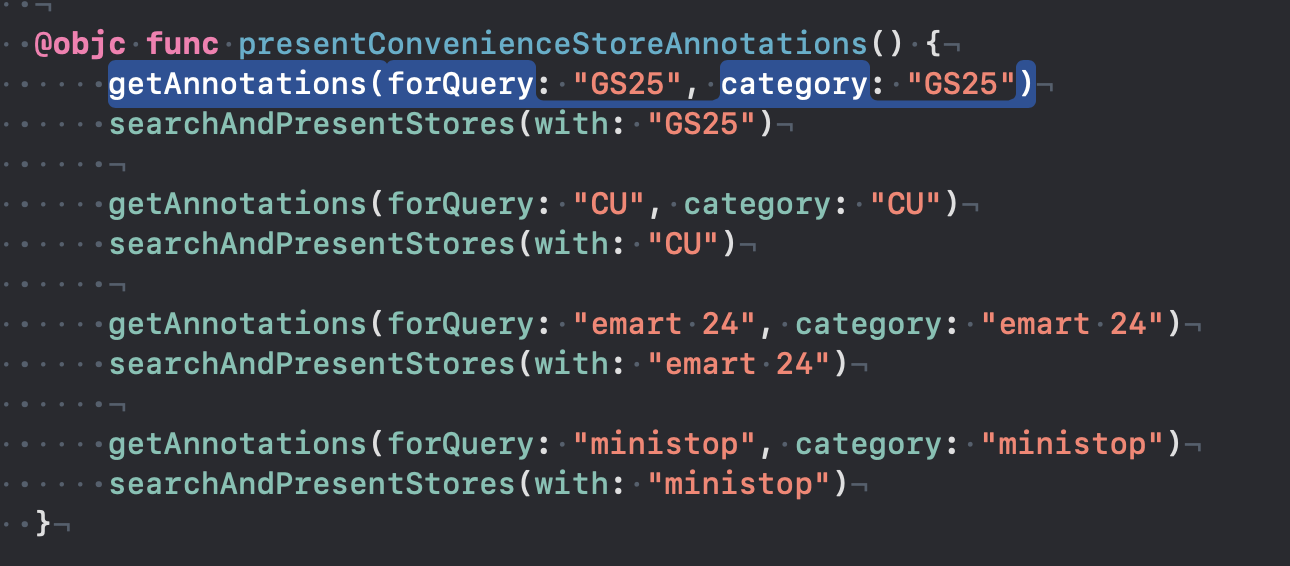 searchAndPresentStores(with: convenienceStore, location : currentLocation)